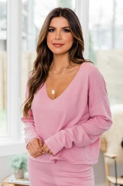 Best Sale π Pink Lily Making It Look Easy Pink Ribbed Shoulder Quarter Zip Pullover π