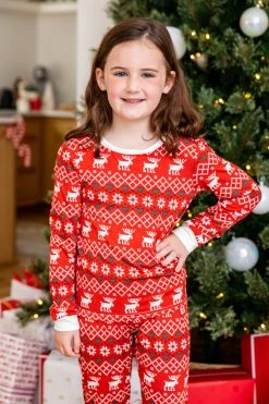 Best Sale π Pink Lily Kids Home For The Holidays Red π Christmas Print Pajama Set π