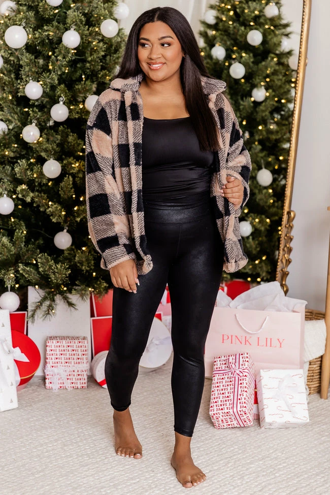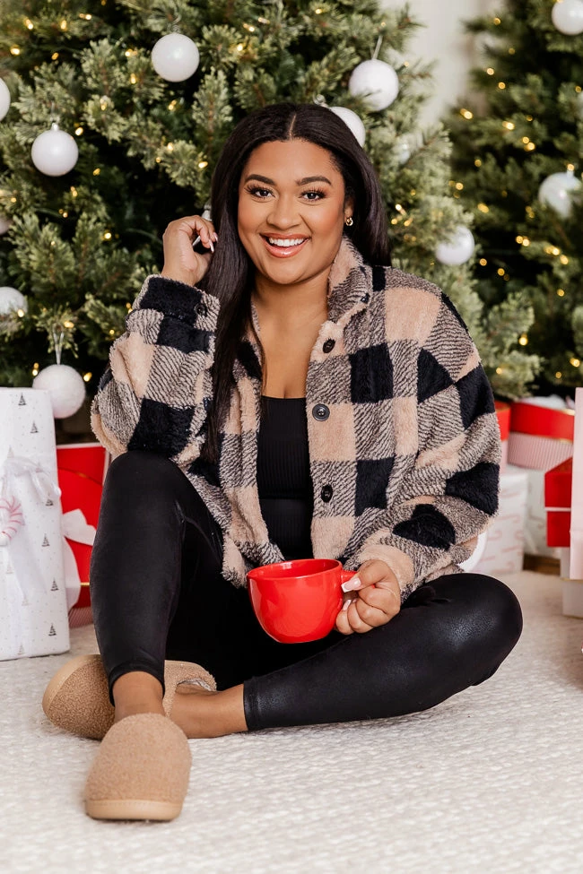 - Beige and black sherpa jacket