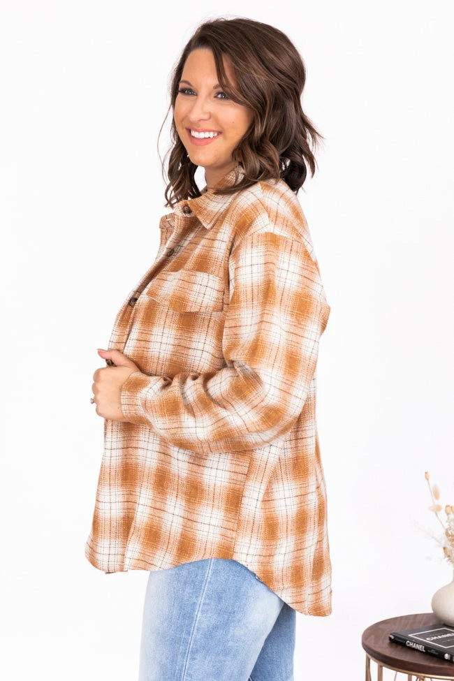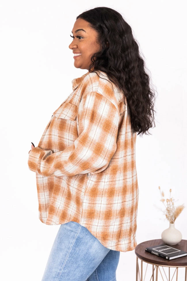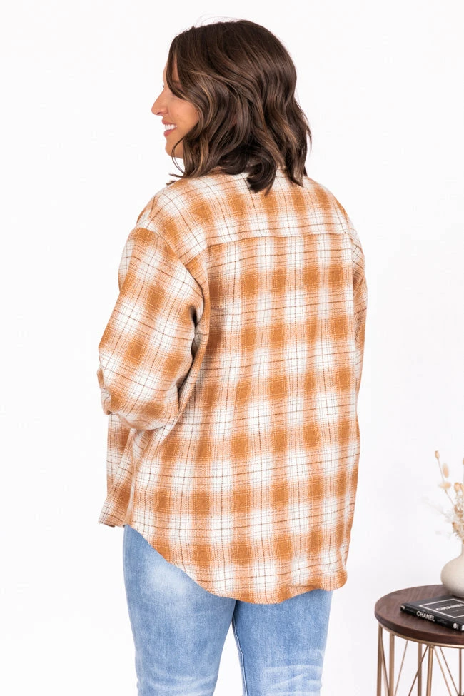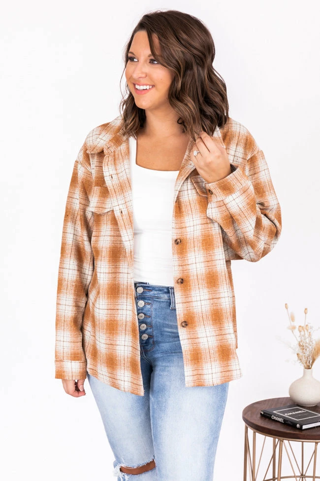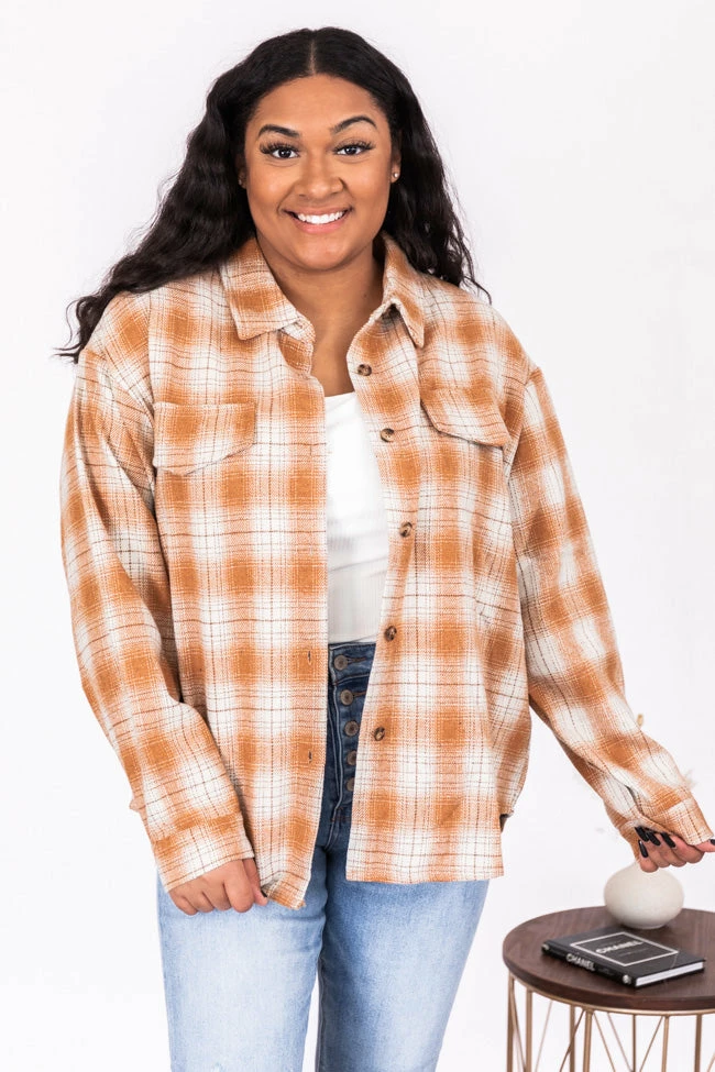 - Rust and white plaid shacket