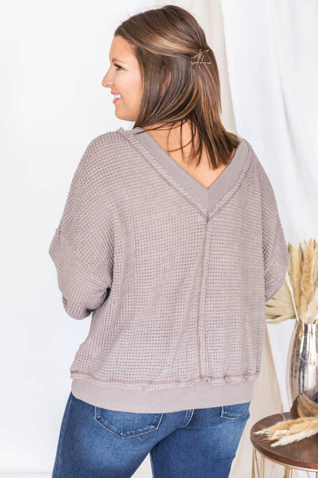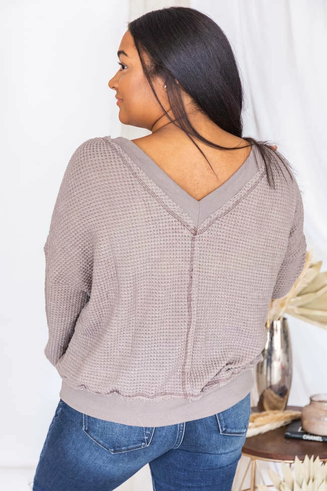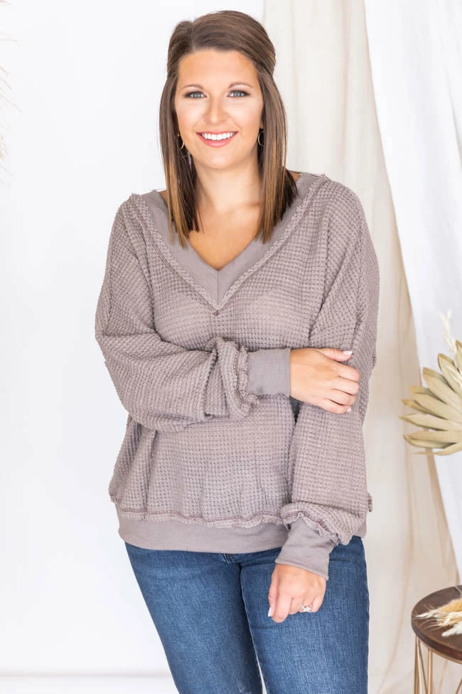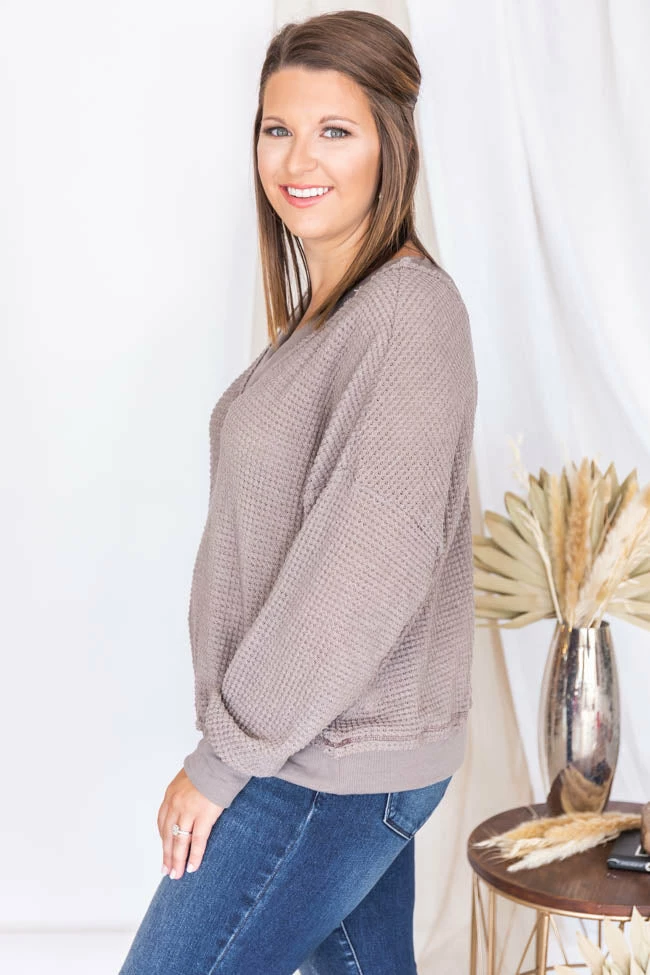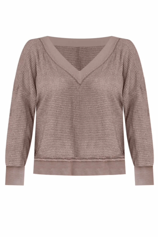 Cheapest ✨ Pink Lily Outstanding Memory Mocha V-Neck Waffle Knit Pullover FINAL SALE ⌛