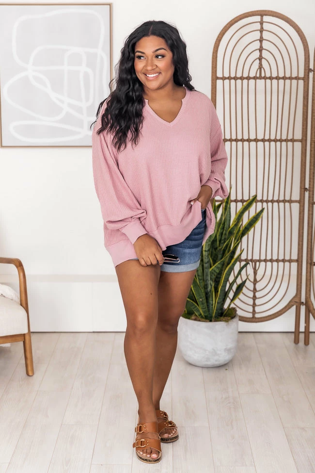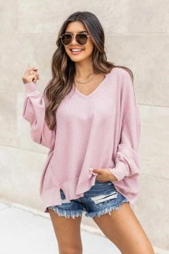 - Waffle knit fabric has stretch, lightweight feel, oversized fit