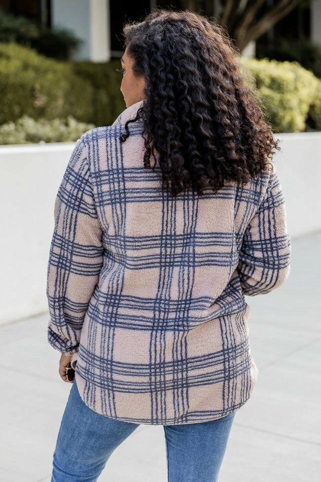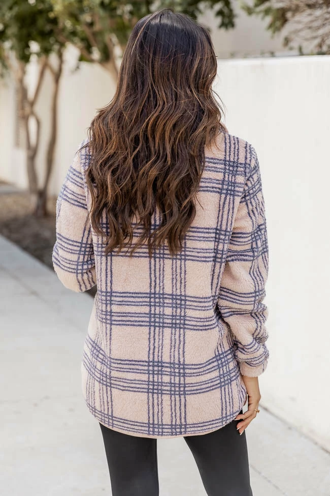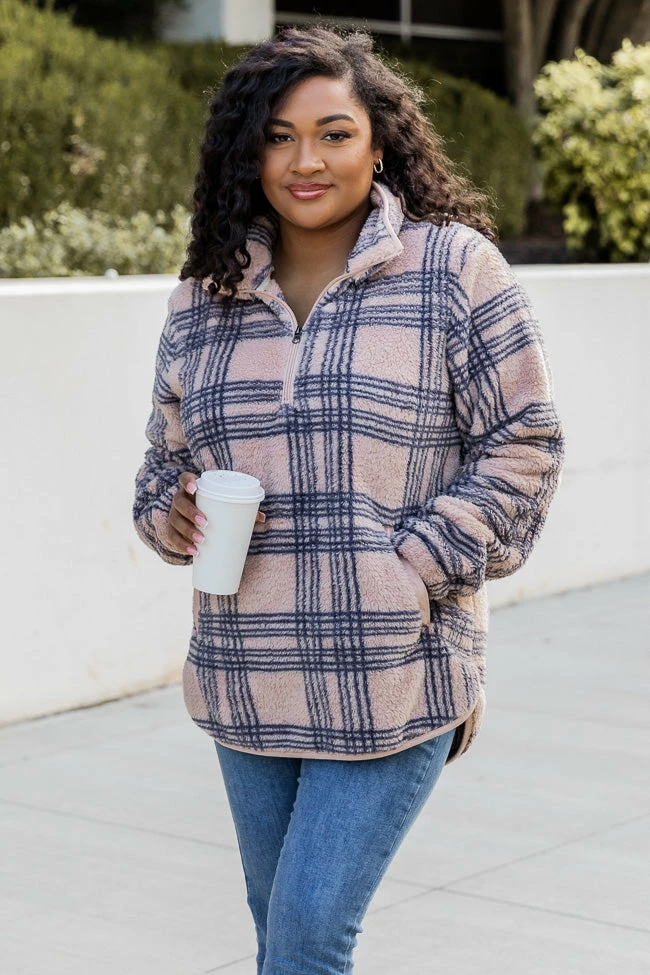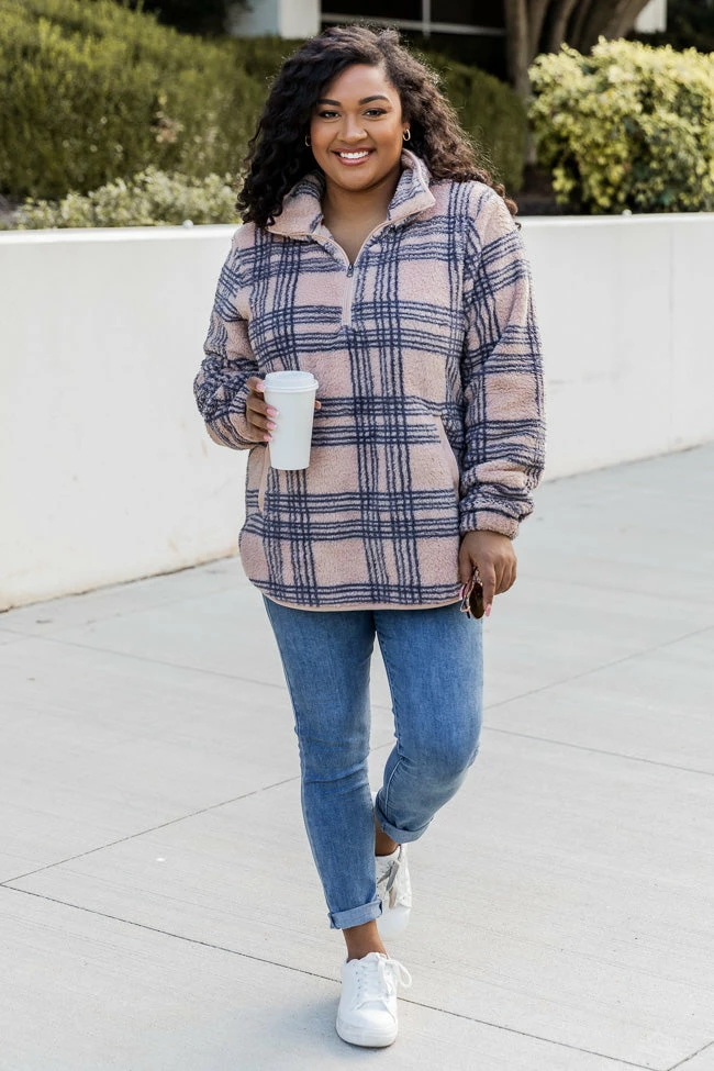 - Beige plaid sherpa pullover