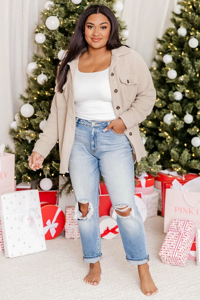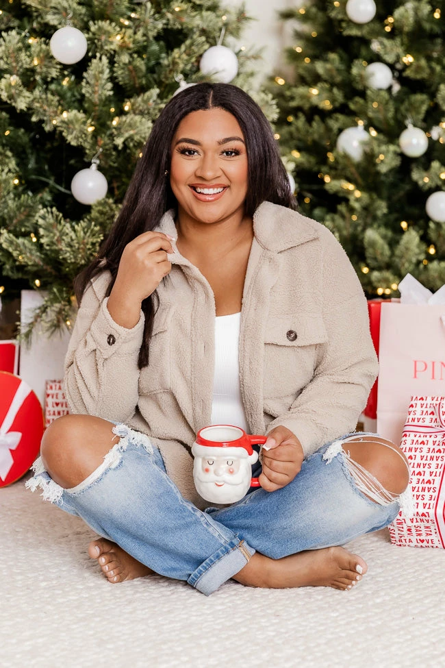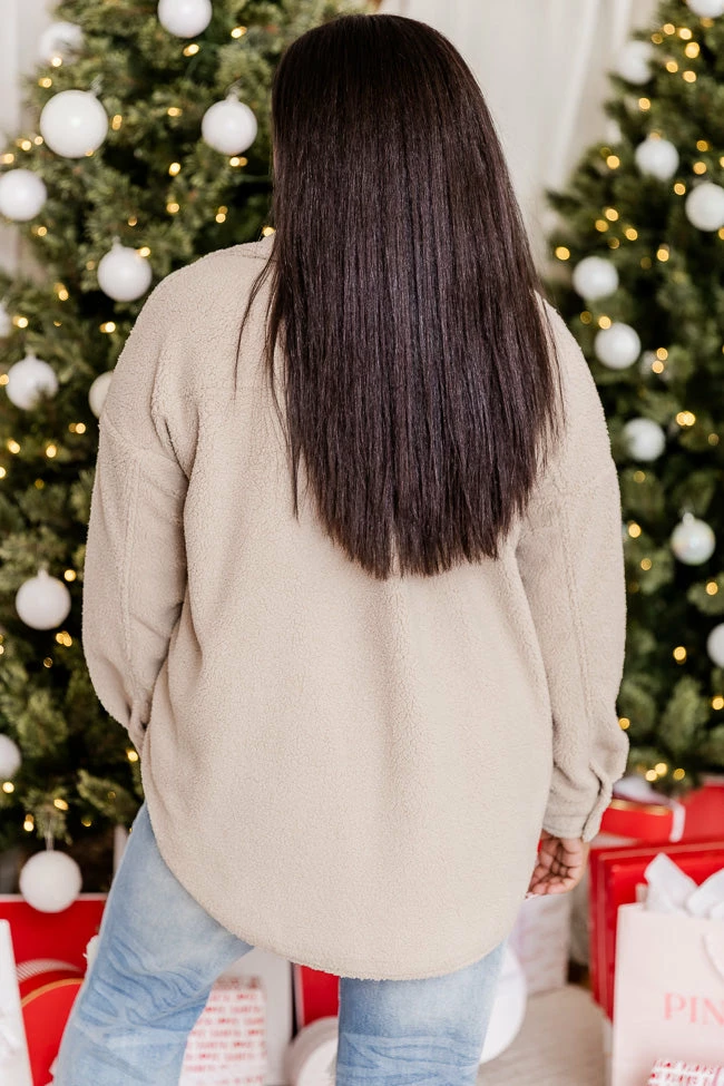 Buy πŸ‘ Pink Lily Wonderful Soul Beige Sherpa Shacket ⭐